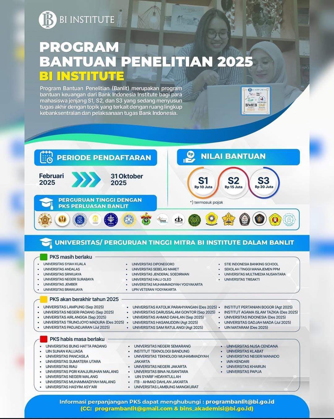 Dan beruntungnya Universitas Diponegoro menjadi salah satu perguruan di Indonesia yang ada di dalam universitas mitra BI Institute, ini juga menjadi kesempatan emas untuk mengajukan penelitian!