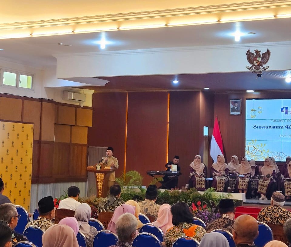 Semarang, April 12, 2025 – The Faculty of Economics and Business (FEB) of Diponegoro University (UNDIP) held a Halal Bihalal event to welcome Eid al-Fitr 1446 H. This activity took place in the Entrepreneurship Building Hall of FEB UNDIP and was attended by all lecturers, education staff (tendik), and the extended family of FEB UNDIP. The event was officially opened by the Dean of FEB UNDIP, Prof. Faisal, with the theme “Strong Silaturahim, Close Brotherhood, and Great Economy”.