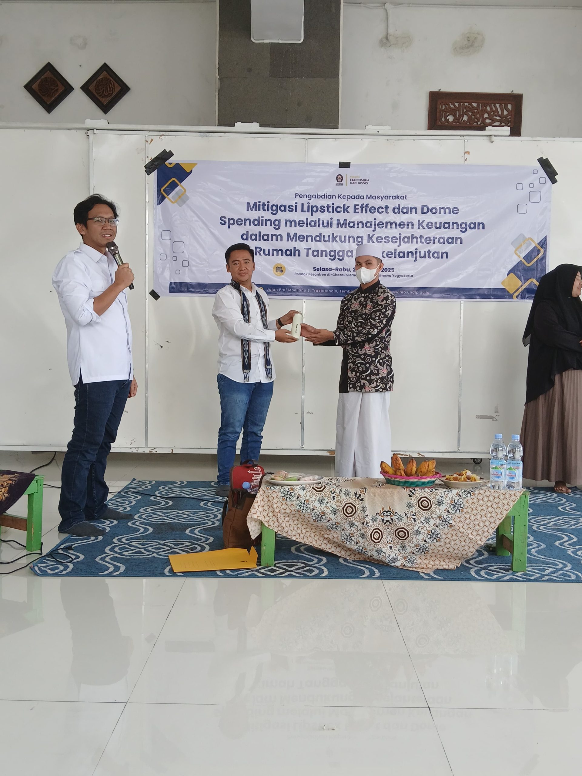 In dealing with the increasing phenomenon of emotional consumption among the younger generation, the Community Service Team from the Department of Economics, Diponegoro University, implemented a financial literacy training program at the Al-Ghozali Student Islamic Boarding School, Sleman, Yogyakarta.