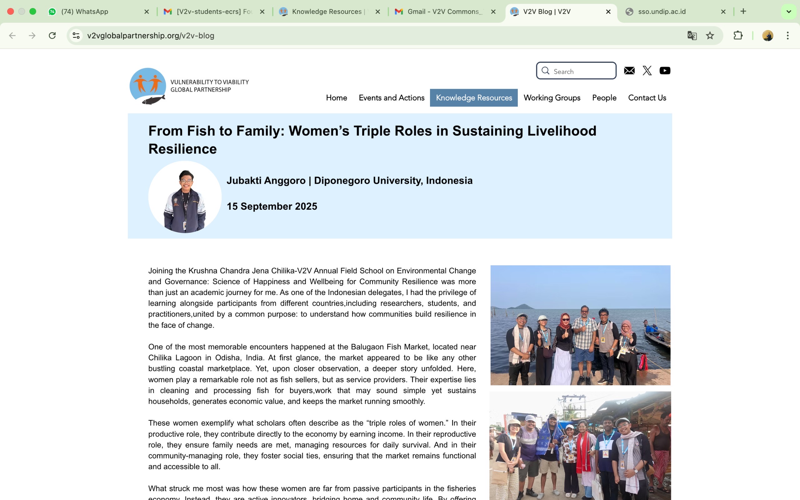 - Jubakti Anggoro menyoroti peran ganda perempuan dalam keberlanjutan ekonomi keluarga dan komunitas lewat tulisan “From Fish to Family: Women’s Triple Roles in Sustaining Livelihood Resilience.”