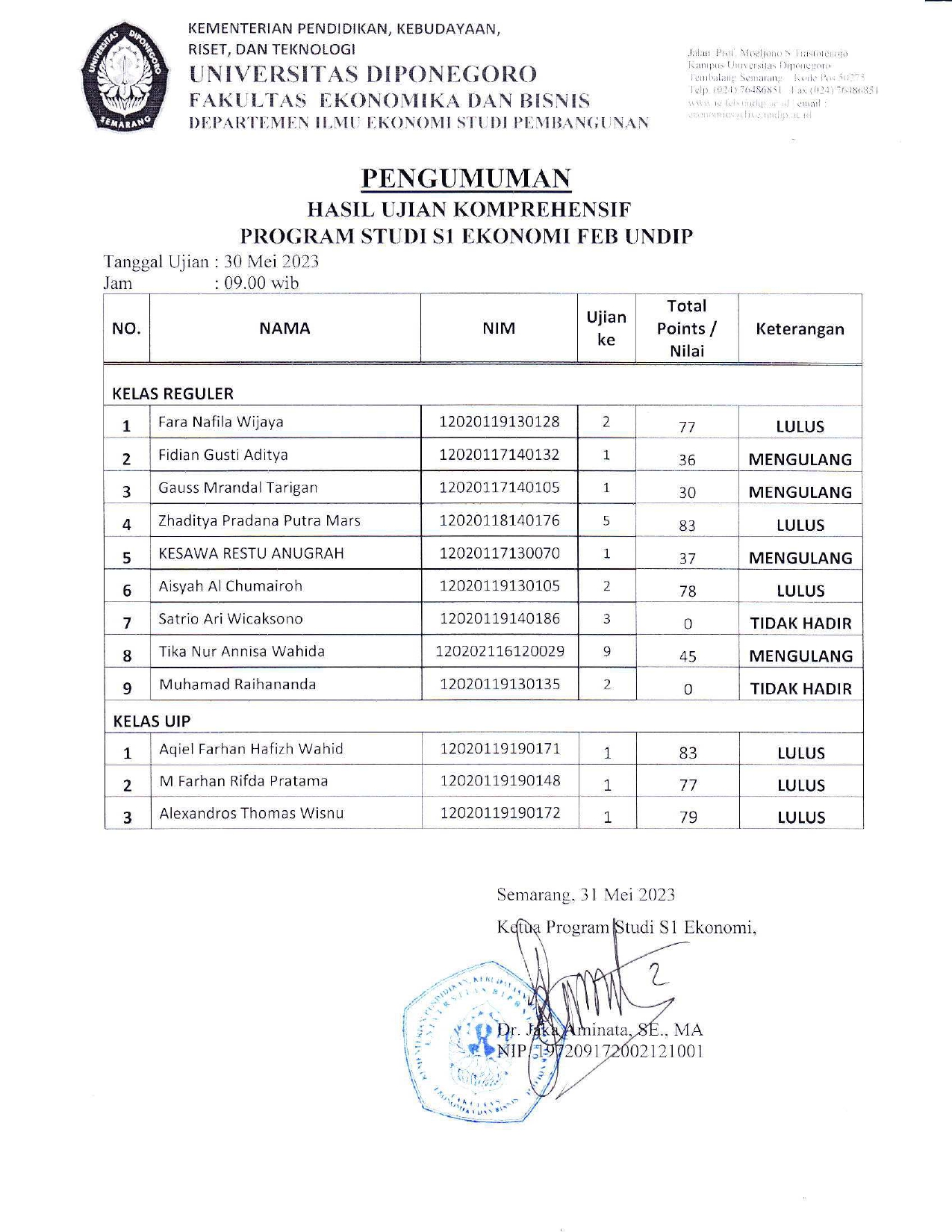 Undip Tetapkan Jadwal Tindak Lanjut Penyesuaian UKT bagi Mahasiswa Tingkat Akhir Semester Genap 2025/2026