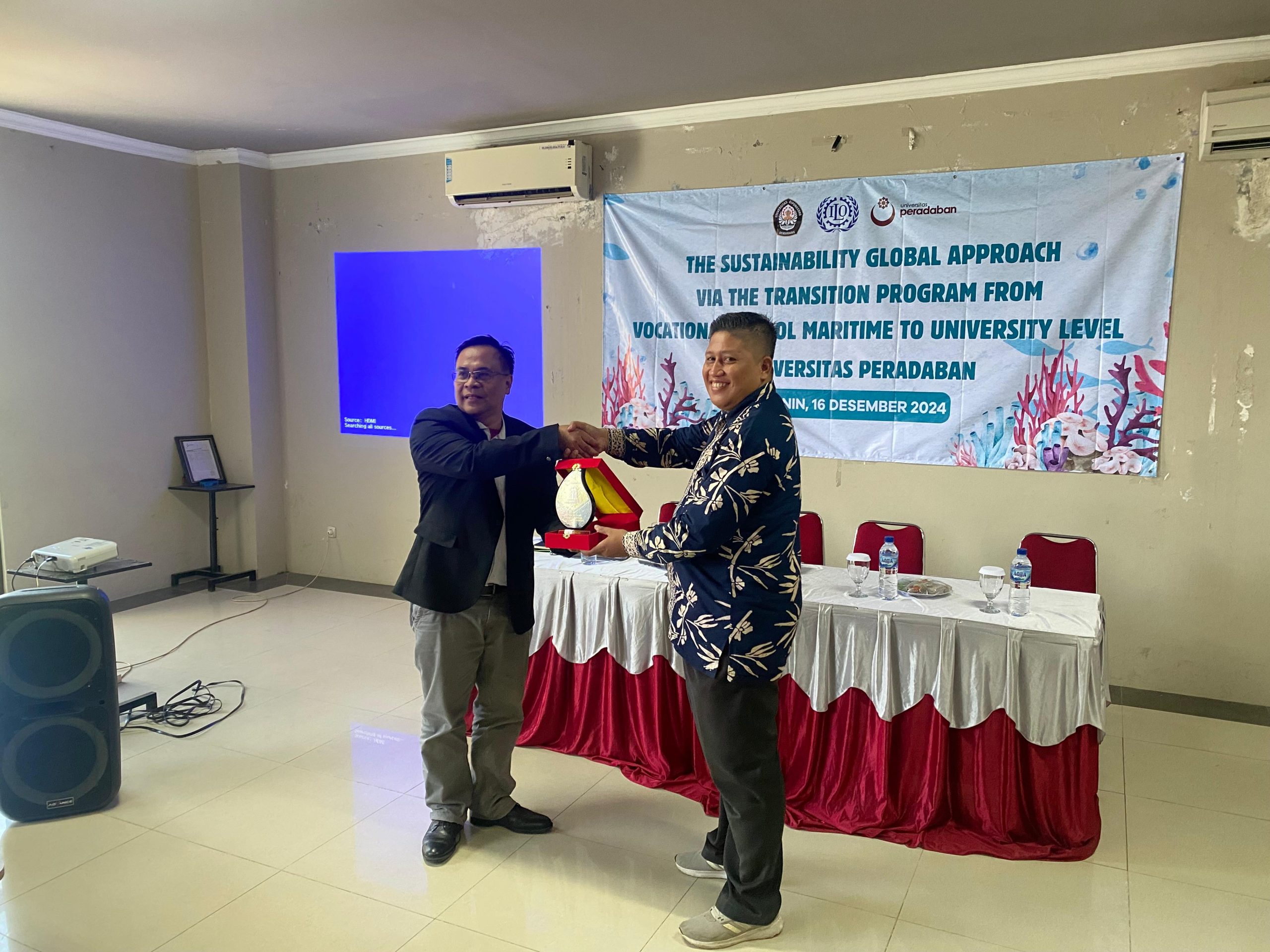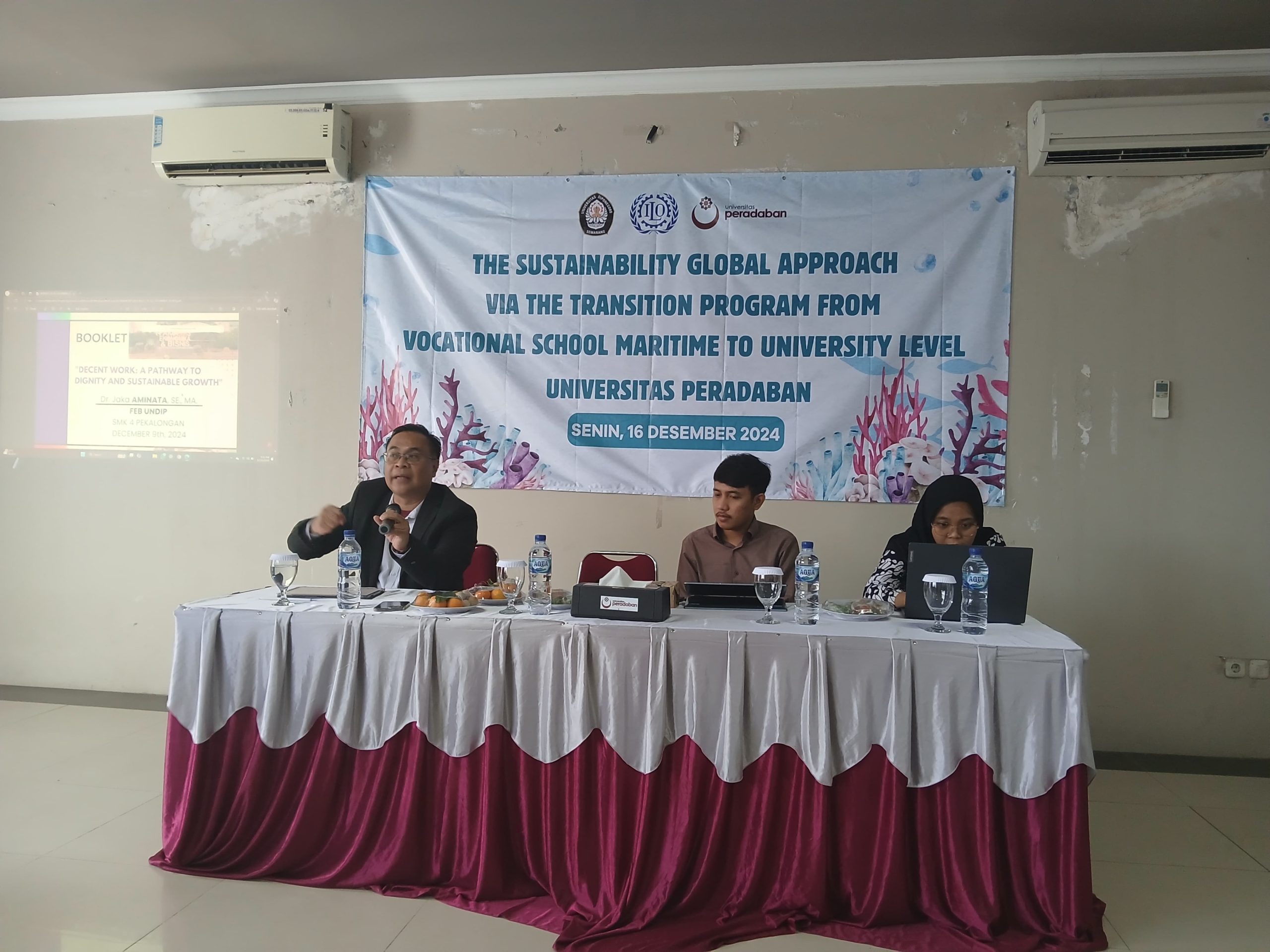 Brebes-Tegal, 16 Desember 2024 – Universitas Diponegoro mengadakan kunjungan ke dua universitas di Kabupaten Brebes, yaitu Universitas Peradaban, dan di Kota Tegal, yaitu Universitas Pancasakti. Kunjungan ini merupakan bagian dari rangkaian kegiatan yang diselenggarakan oleh ILO (International Labour Organization) dengan tema “The Sustainability Global Approach Via the Transition Program from Vocational School Maritime to University Level.”