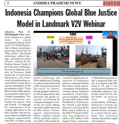 Semarang – Dalam upaya menjawab tantangan ketimpangan sosial dan keberlanjutan lingkungan di wilayah pesisir, Guru Besar Ekonomi UNDIP, Profesor Indah Susilowati menekankan pentingnya transisi dari pertumbuhan biru (blue growth) menuju keadilan biru (blue justice) dalam sebuah presentasi ilmiah yang disusun bersama authors lain Hapsari Ayu Kusumawardhani, Aini Nur Furoida dan Ika Suciati.